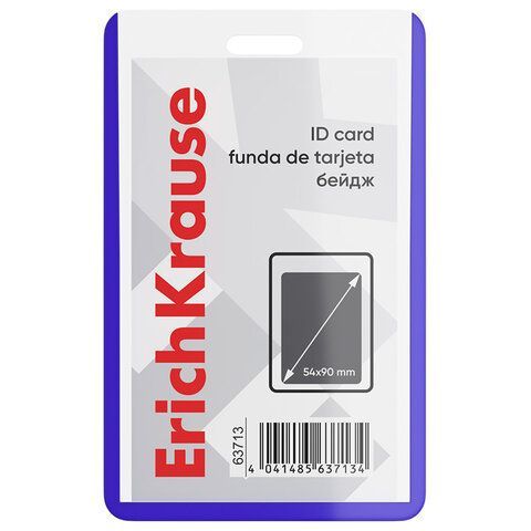 - Бейдж вертикальный ERICH KRAUSE 50 шт. (54х90мм), корпус прозрачный с синим, 63713