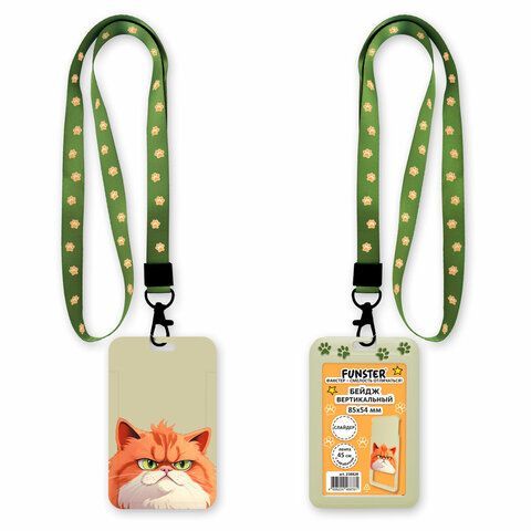 - Бейдж вертикальный с 3D печатью "Котик" (85х54 мм), лента 45 см, СЛАЙДЕР, FUNSTER, 238828