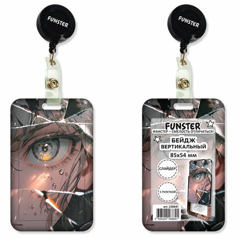- Бейдж вертикальный с 3D печатью "Отражение" (85х54 мм), с рулеткой, СЛАЙДЕР, FUNSTER, 238841