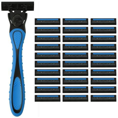 - Бритвенный станок многоразовый мужской, 3 лезвия, 31 кассета, синий, X-ONE, 700024