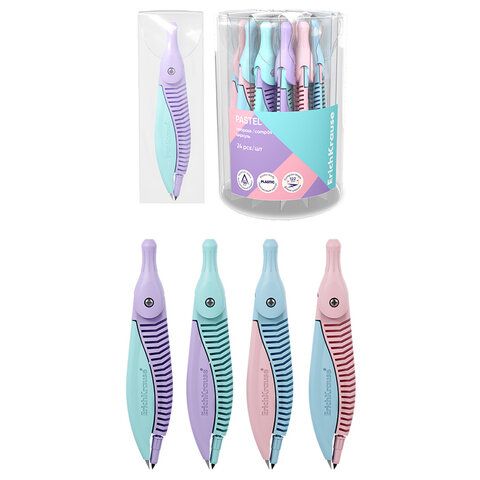 - Циркуль ERICH KRAUSE Pastel пластиковый, 122мм, ПВХ чехол, ассорти, 61285