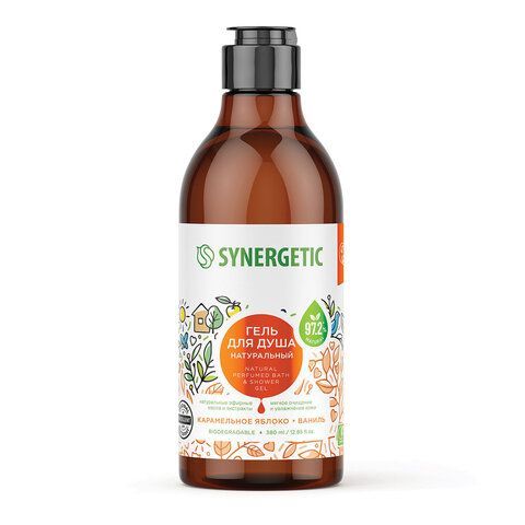 Гель для душа 380мл SYNERGETIC "Карамельное яблоко и ваниль" натуральный, биоразлагае, 400005
