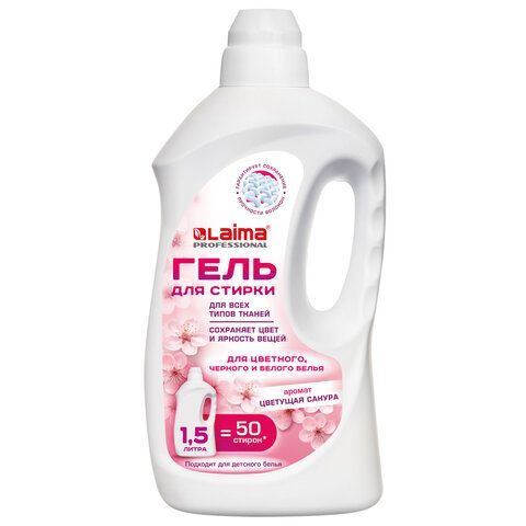 Гель для стирки всех видов тканей универсальный 1,5л LAIMA PROFESSIONAL "Цветущая сакура", 702186