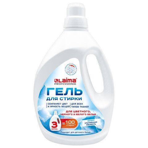 Гель для стирки всех видов тканей универсальный 3л LAIMA PROFESSIONAL "Альпийская Свежесть", 702187