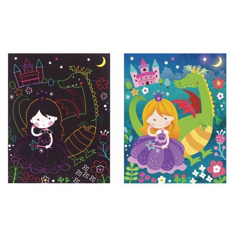 - Гравюра магическая "Принцесса и дракоша", А5, 2 основы в комплекте, с трафаретом, ЮНЛАНДИЯ, 662690