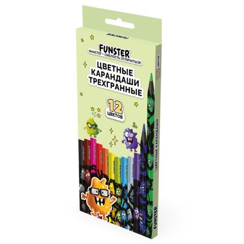 Пластиковые трехгранные цветные карандаши высокого качества FUNSTER - идеальный выбор для творческих исследователей всех возрастов, которые любят рисовать, раскрашивать и фантазировать.