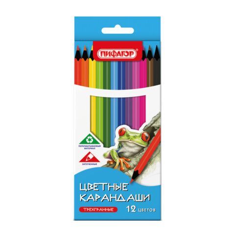 - Карандаши цветные ПИФАГОР 24 шт. СТАНДАРТ 12 цветов, трехгранный корпус, 182087