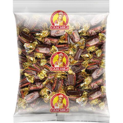 - Конфеты глазированные СЛАВЯНКА "Сласть" шоколадная нуга с карамелью 1000 г, 20523
