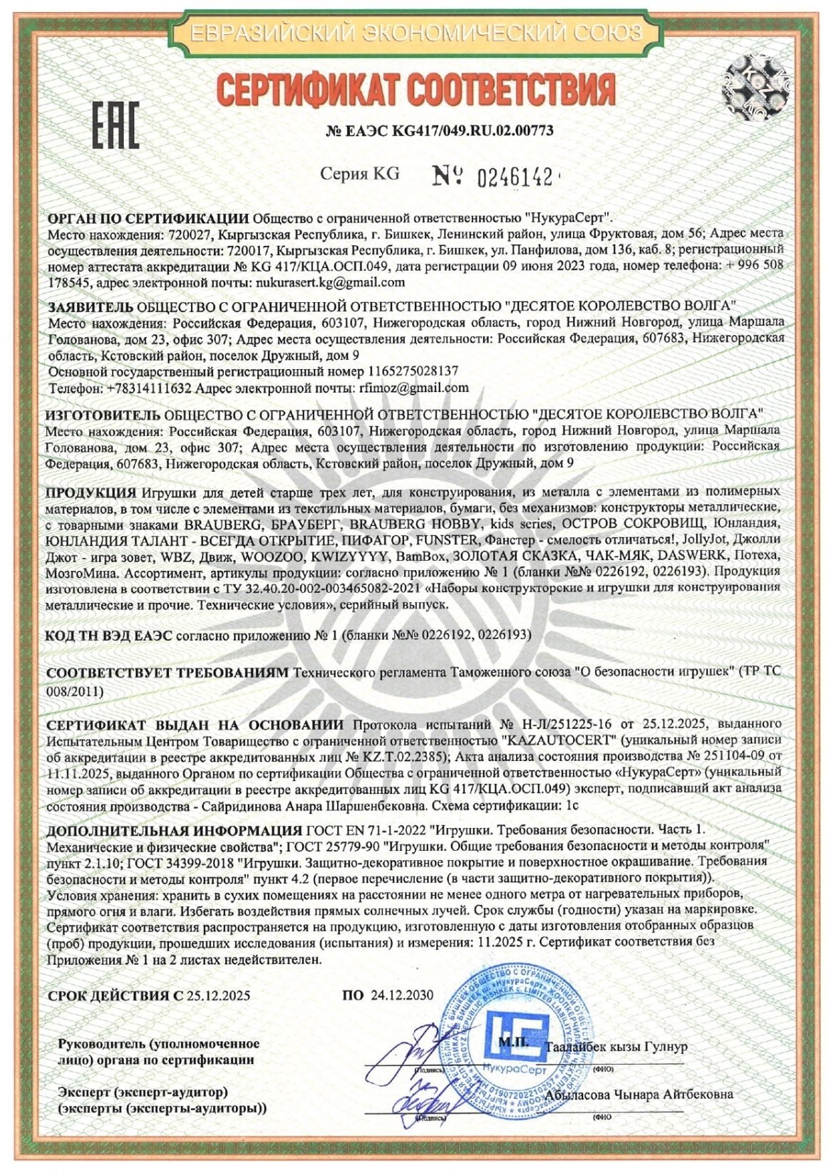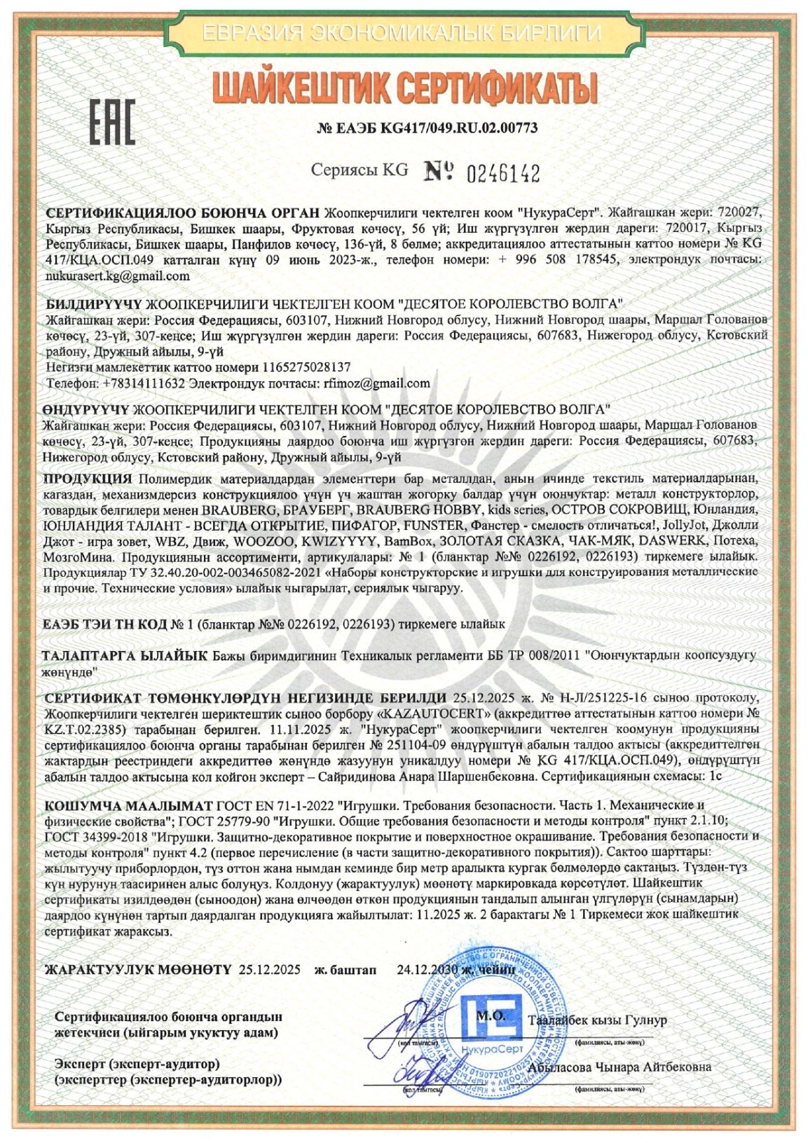 Комплектация набора: 126 элементов, гаечный ключ, отвертка, пошаговая инструкция по сборке.