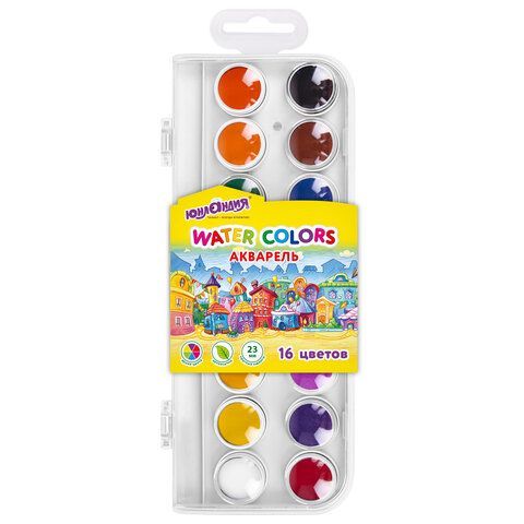 - Краски акварельные ЮНЛАНДИЯ 12 шт. "ДОМИКИ" 16 цветов, круглые кюветы 23 мм, пенал, 192631