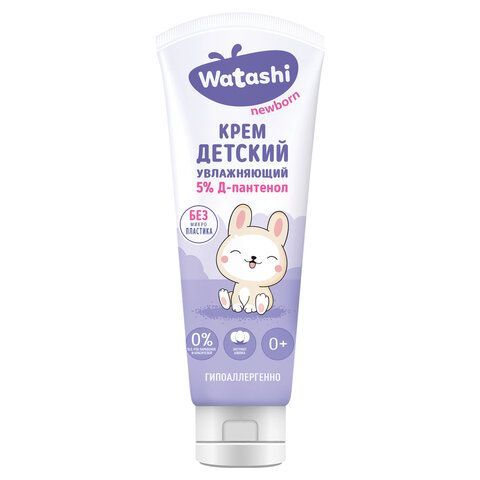- Крем детский 0+ гипоаллергенный увлажняющий с Д-пантенолом 75мл WATASHI "Экстракт хлопка", 14054