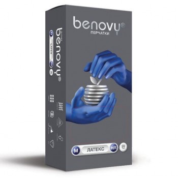 Перчатки латексные смотровые 25 пар (50шт) прочные размер M (средний) BENOVY High Risk, ЧЗ, шк1967