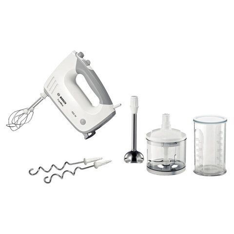 Миксер BOSCH MFQ 36480, 450Вт, 5 скоростей, 6 насадок, стакан, белый, MFQ36480