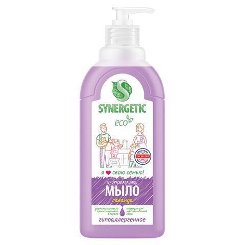 Мыло жидкое 500мл SYNERGETIC "Лаванда", гипоаллергенное, биоразлагаемое, дозатор, 105054/14