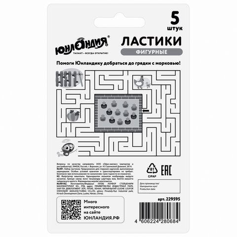- Набор ластиков фигурных ЮНЛАНДИЯ 2 шт. "Огород", 5 шт., ассорти, 229595