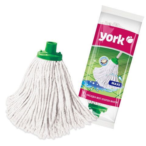 Насадка для мытья полов веревочная Макси YORK,подходит к любым рукояткам со стандартной еврорезьбой. Имеет длинные хлопковые ленты. Хорошо собирает влагу.