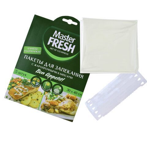 Пакеты для запекания с жаропрочными клипсами 30х40 см, 5шт, картонная коробка, Master