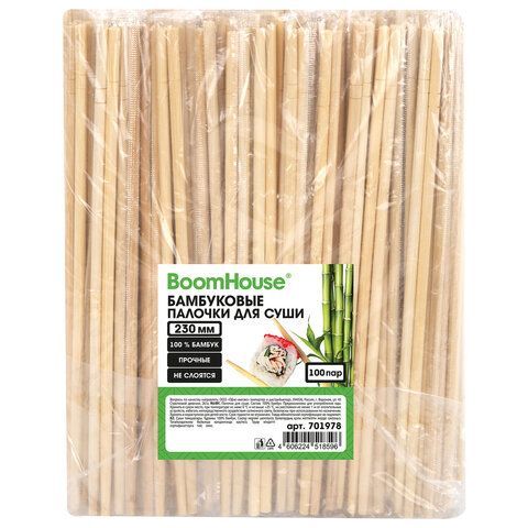 - Палочки для суши бамбуковые 23см, 100 ПАР, в индивидуальной упаковке, BOOMHOUSE, 701978