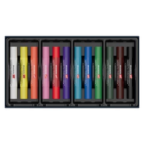 Масляная пастель легко ложится на различные фактуры цветной бумаги, бумагу для рисования, холст, картон, дерево, керамику. 12 цветов позволяют передать полную цветовую палитру. Высокое качество пигментов и связующего обеспечивает низкий расход материала, хорошую укрывистость и яркость цвета. Пастель имеет вид брусков с круглым сечением, обёрнутых в бумажную обёртку. Она позволяет сохранять руки и одежду чистыми. Не токсична и безопасна при использовании. Благодаря компактной упаковке удобно брать с собой.