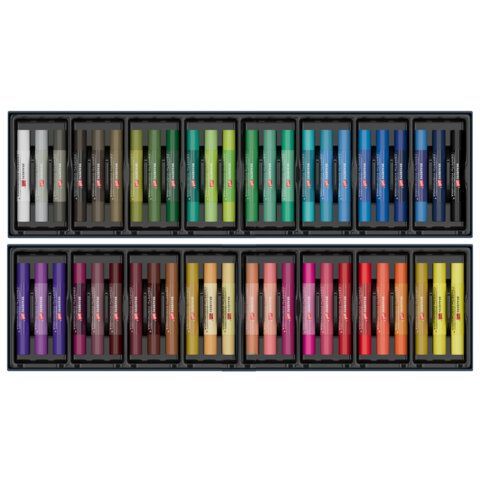 Масляная пастель легко ложится на различные фактуры цветной бумаги, бумагу для рисования, холст, картон, дерево, керамику. 48 цветов позволяют передать полную цветовую палитру. Высокое качество пигментов и связующего обеспечивает низкий расход материала, хорошую укрывистость и яркость цвета. Пастель имеет вид брусков с круглым сечением, обёрнутых в бумажную обёртку. Она позволяет сохранять руки и одежду чистыми. Не токсична и безопасна при использовании. Благодаря компактной упаковке удобно брать с собой.