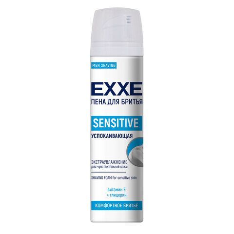 Пена для бритья EXXE SENSITIVE.Новая обогащенная формула с глицерином и витамином E обеспечивает: легкое скольжение бритвы (без порезов и раздражений), комплексный уход за кожей (смягчает и увлажняет), защиту от сухости (формула без спирта). Подходит для чувствительной кожи. Глицерин смягчает и увлажняет. Повышенное пенообразование обеспечивает длительное время использования. Имеет ненавязчивый и приятный мужской аромат.