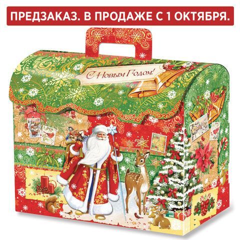 Новогодний подарок "СУНДУК СПЕШУ НА ПРАЗДНИК" МОСУПАК – это сладости в картонной коробке с новогодним дизайном. Упаковка имеет удобную ручку для переноски. 1000 г популярных кондитерских изделий обязательно придутся по вкусу всем сладкоежкам!