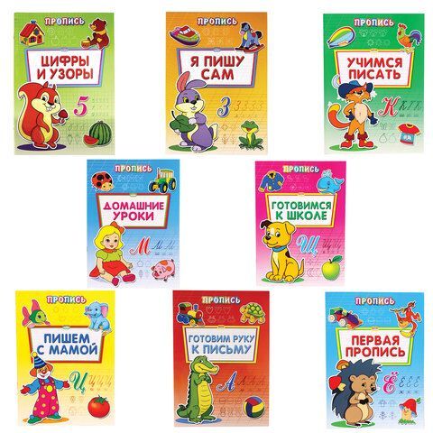 - Прописи "Уроки письма", большие А4 195х275 мм, КОМПЛЕКТ 8 шт., ПП