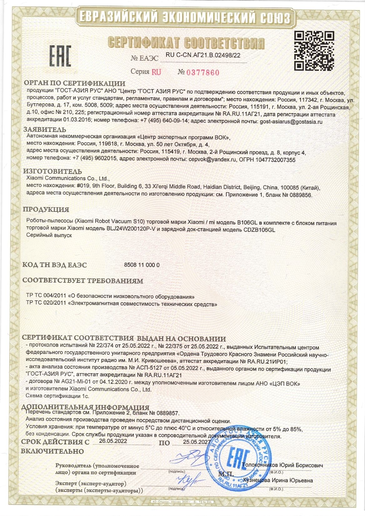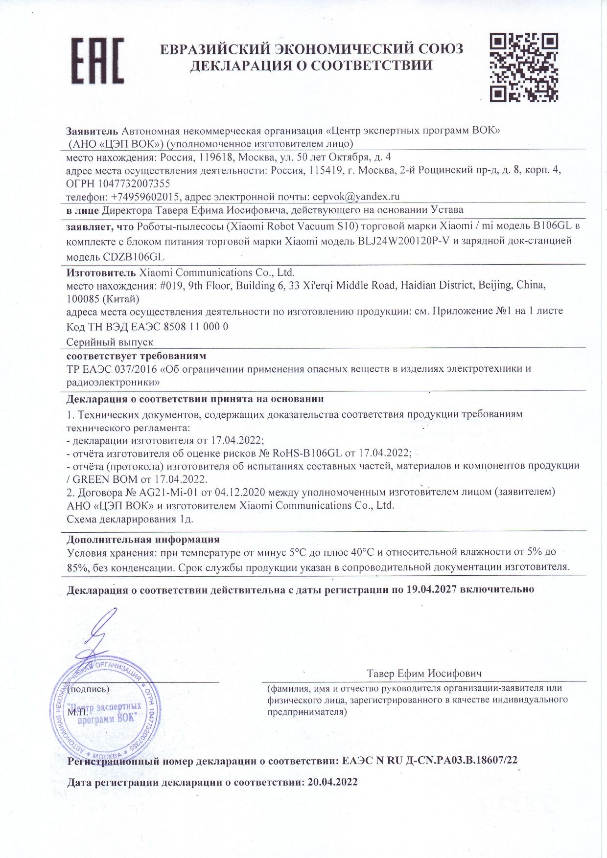 Робот-пылесос XIAOMI Mi Robot Vacuum S10, влажная уборка, контейнер 0,3 л, работа до 130 минут, белый, BHR5988EU