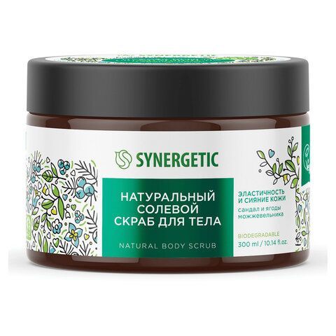 Скраб для тела 300мл SYNERGETIC "Сандал и ягоды можжевельника" натуральный, солевой,, 800001