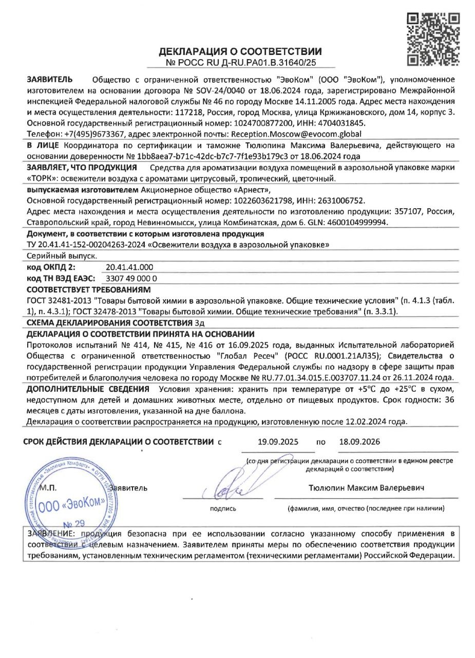 Аэрозольный освежитель воздуха Tellus cодержит концентрированные ароматические вещества, которые устраняют неприятные запахи в помещении, наполняют его легкими, нежными ароматами, и поддерживает свежесть на протяжении долгого времени. Подходит для использования в диспенсерах Tork A1 / AF1 для аэрозольного освежителя воздуха.