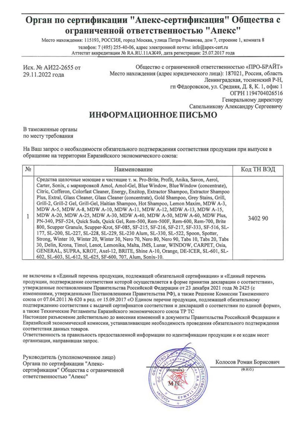 Состав: вода, аПАВ < 5%, нПАВ < 5%, комплексоны, специальные и щелочные добавки, гликоль, ароматизатор < 5%.