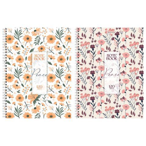 - Тетрадь А4, 120 л., BRAUBERG, гребень, клетка, матовая ламинация, "Цветочный паттерн", 405646