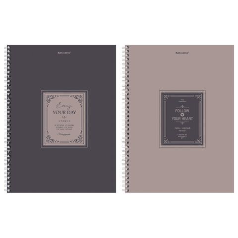 - Тетрадь А4, 120 л., BRAUBERG, гребень, клетка, матовая ламинация, "Винтаж", 405644