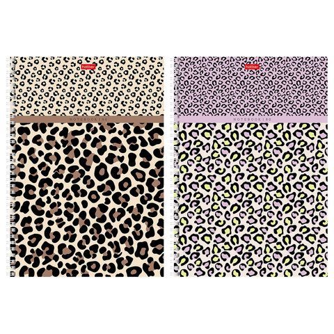 Тетрадь А4 80л. HATBER гребень, клетка, тиснение, LEO-принт (микс в спайке), 092755, 80Т4тВ1гр