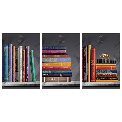 Тетрадь А4 формата 96 листов. Обложка: мелованный картон. Дизайн изделия дополнен тиснением с матовой ламинацией. Внутренний блок: офсет 60гр., клетка. Скрепление: скоба.