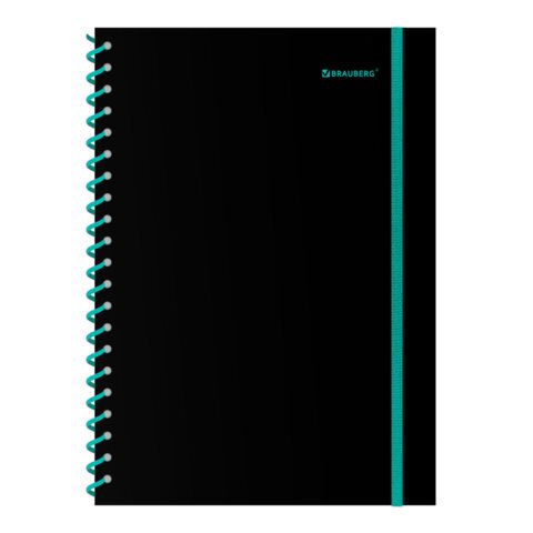 Тетрадь обложка пластик, А4 80л. спираль пластик, резинка, клетка, BRAUBERG, черный/синий, 405381