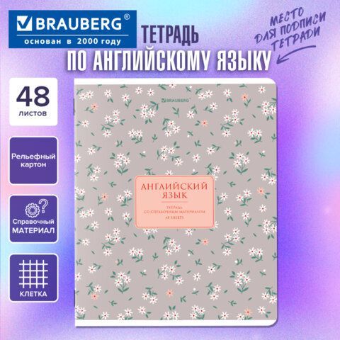 Тетрадь предметная BLOSSOM 48л, рельефный картон, АНГЛИЙСКИЙ ЯЗЫК, клетка, подсказ, BRAUBERG 30 шт., 405592