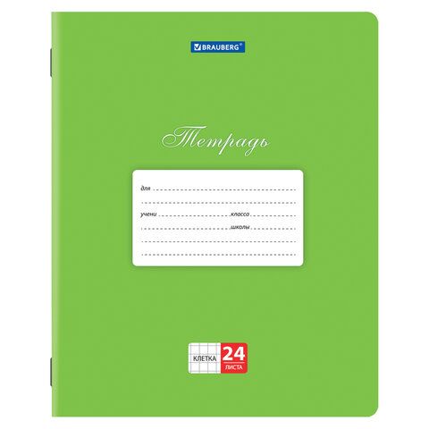 - Тетради 24 л. КОМПЛЕКТ 10 шт. BRAUBERG "КЛАССИКА", клетка, обложка картон, ЗЕЛЕНАЯ, 106661