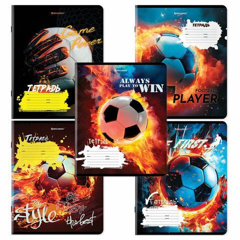 - Тетради ДЭК 18 л. КОМПЛЕКТ 10 шт., BRAUBERG, клетка, обложка картон, Футбол, 106756