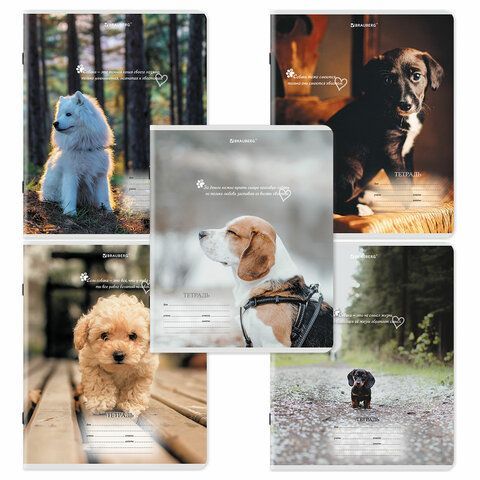 - Тетради ДЭК 18 л. КОМПЛЕКТ 10 шт., BRAUBERG, клетка, обложка картон, Щеночки, 106758