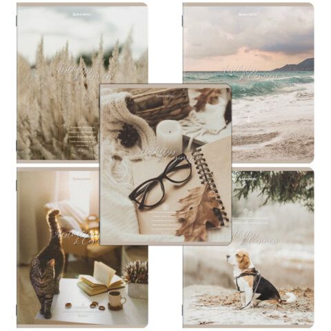 - Тетради ДЭК А5 48 л. КОМПЛЕКТ 5 шт. BRAUBERG, скоба, клетка, SoftTouch, "ESTHETICS", 404929