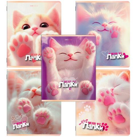 - Тетради ДЭК А5 48 л. КОМПЛЕКТ 5 шт. BRAUBERG, скоба, клетка, SoftTouch, "ЛАПКИ", 404946