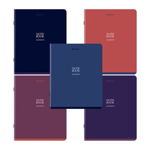 - Тетради ДЭК А5 48 л. КОМПЛЕКТ 5 шт. BRAUBERG скоба, клетка, SoftTouch, "NoteBookMono", 404911