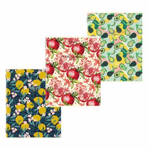 Тетради КОМПЛЕКТ 3 шт. А4, 96 л., BRAUBERG скоба, клетка, глянцевый лак, "Fruits", 404387