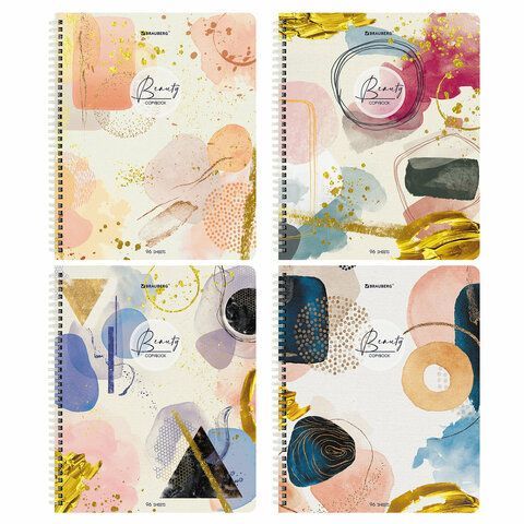 - Тетради КОМПЛЕКТ 4 шт., А5, 96 л., BRAUBERG гребень, клетка, глянцевый лак, "Insight", 404404
