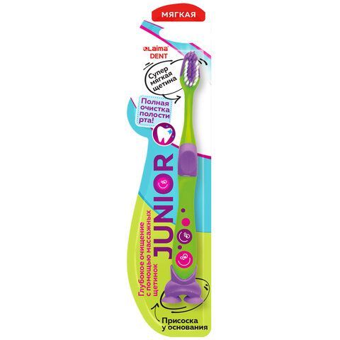 Зубная щётка LAIMA DENT "JUNIOR"- это идеальное решение для ухода за полостью рта и здоровья зубов детей. Мягкая щетина для самого деликатного ухода. Присоска в основании ручки для удобства хранения.