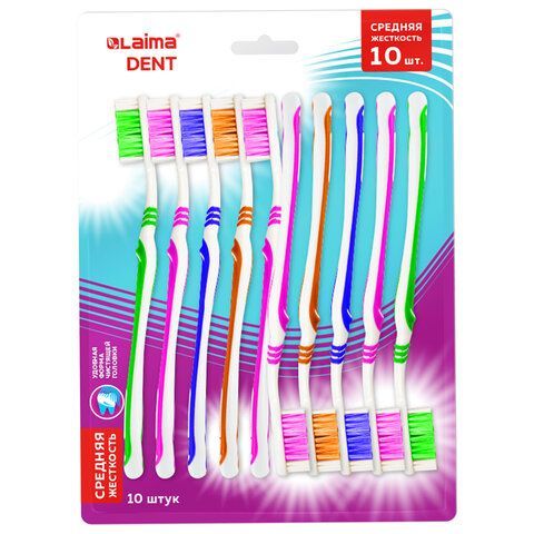 - Зубная щетка средней жесткости, КОМПЛЕКТ 10 шт, LAIMA DENT, 609311